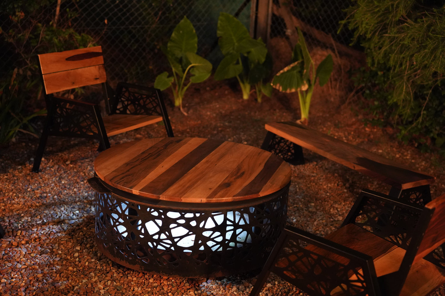 Agregando una luz led cálida debajo, podes iluminar la trama, y que sea un objeto innovador y decorativo sin la necesidad de prender el fuego.