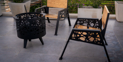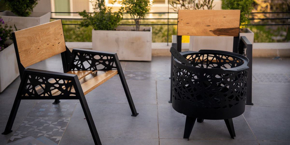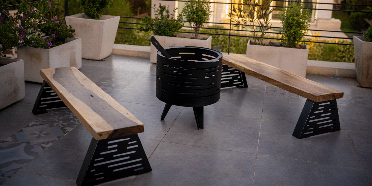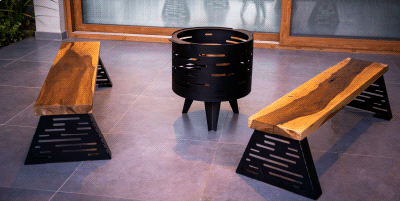 Al diseño de Fogueta, combinalo con maderas para crear tu living.