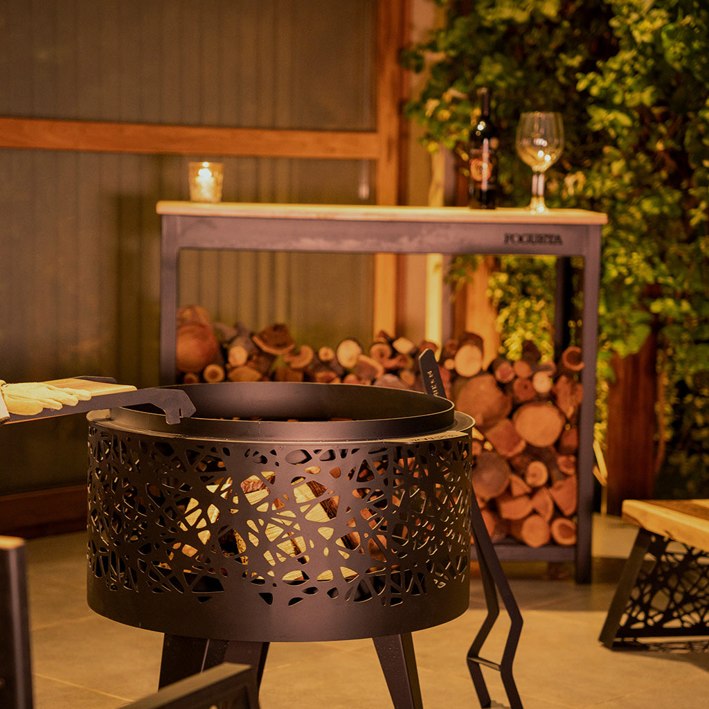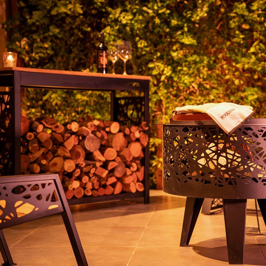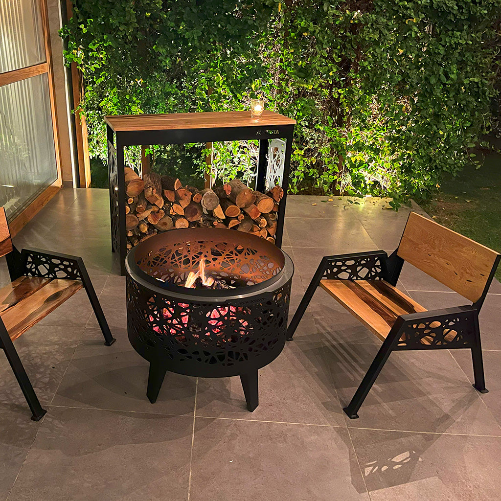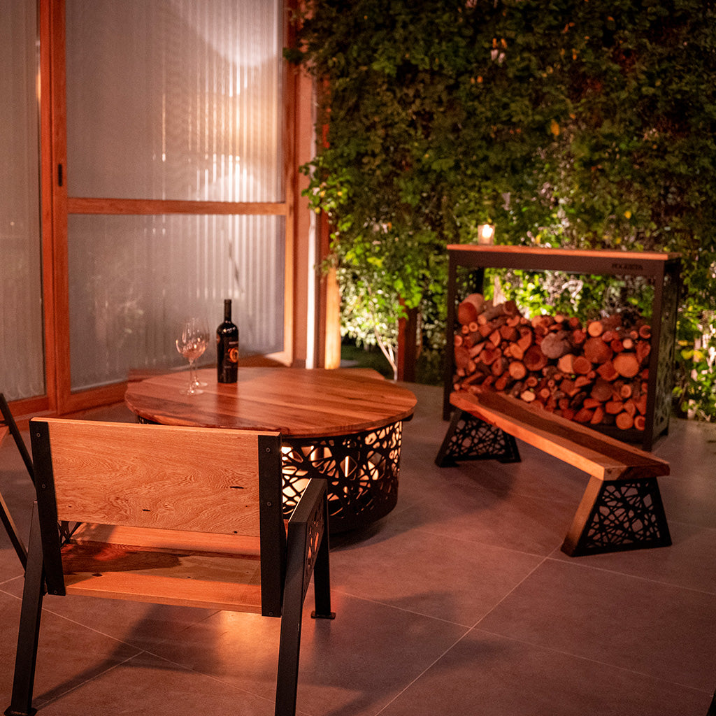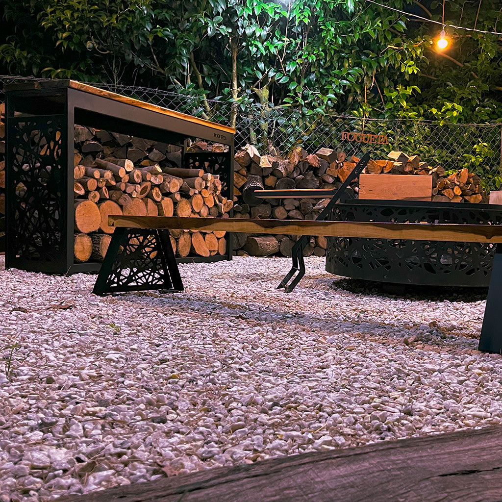 Nuestro leñero te soluciona el espacio para guardarla, y también funciona como barra: es un excelente complemento para tus comidas, usarla a modo de bar, o apoyar lo que necesites.