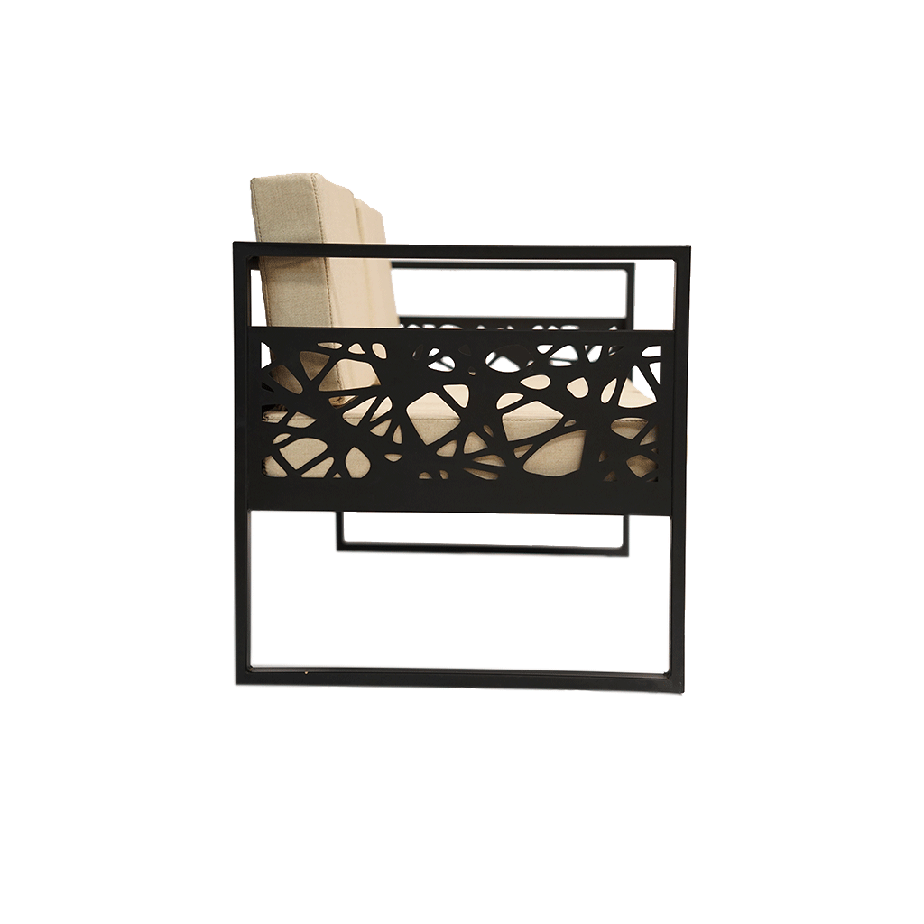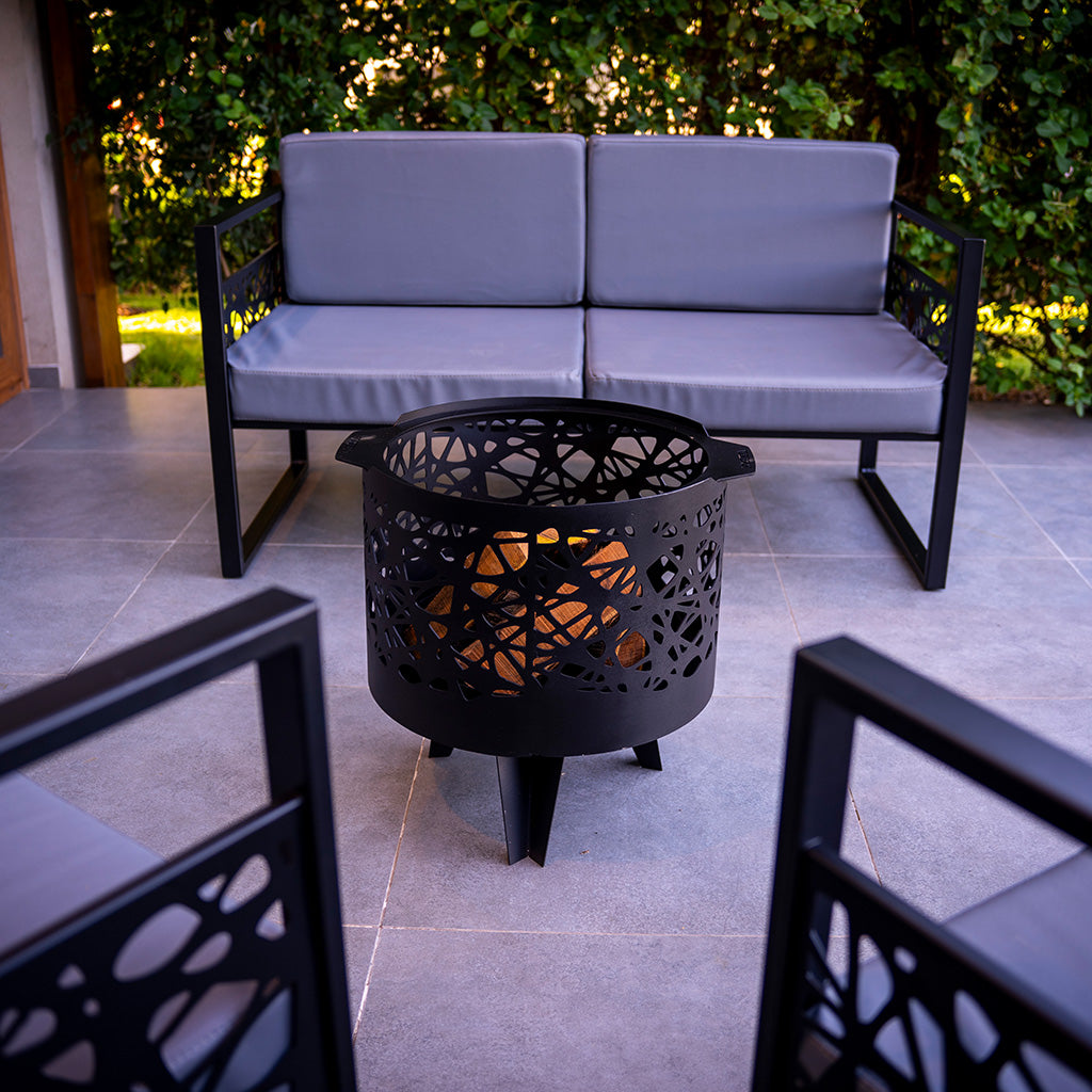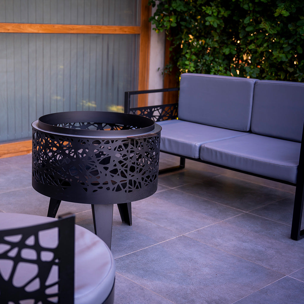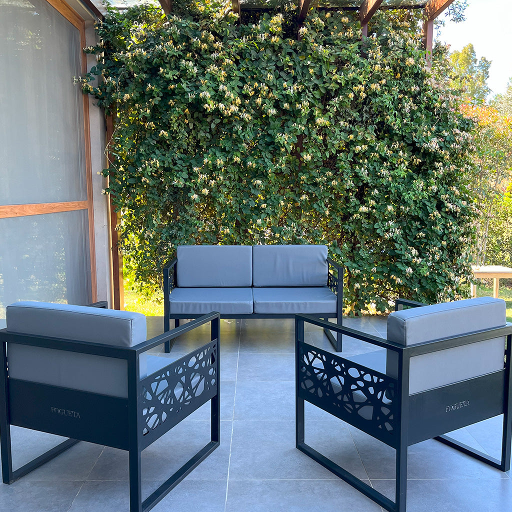 De líneas rectas y con el detalle de las tramas de la Fogueta, es ideal para ese espacio en el que quieras disfrutar una buena reunión, tanto al aire libre como bajo techo.